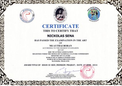 In 2017 the Grandmaster awarded Nick with the Rank of Khan 12 and the Title of "Kru", a Thai word derived from the Sanskrit word "Guru". Guru is a term which can be translated as "Master" and which many in the Western world are now familiar with. In the Martial Art of MuayThai Boran the Title signifies a Fully Qualified Teacher/Master. This honor distinguished Nick as an internationally recognized expert; a significant achievement which had only been bestowed upon three other Americans in history at that time.